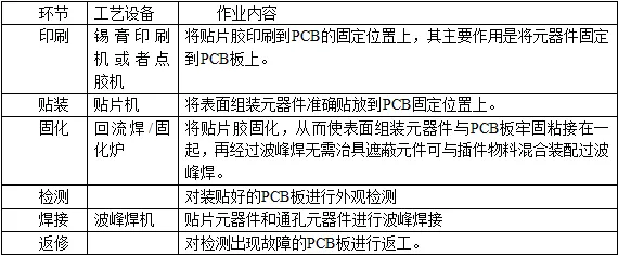 工艺和混合装联工艺;按线路板元件分布可以分为单面和双面工艺;按元件粘接到线路板上的方法可以分为锡膏工艺和红胶工