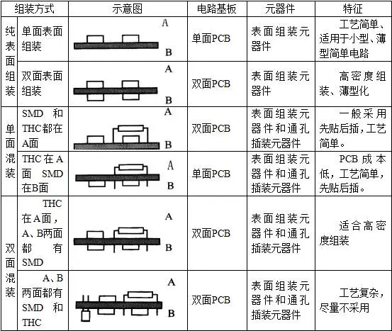 表1-4 SMT组装方式