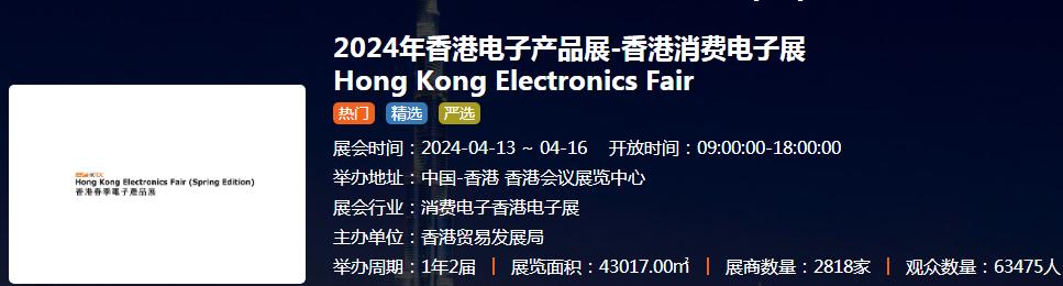 Publish: 2023-04-19 21:20:36 Update: 2025-04-27 23:22:50 View: 1028We will attend the Spring Hong Kong Electronics Fair at 13th-16th April 2024.